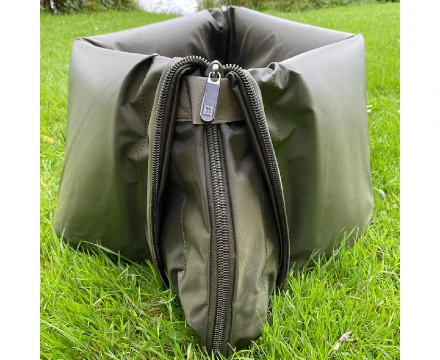 Deze Origami Mat is een onthaakmat, weighsling en cradle in één. Gemaakt uit waterbestendig polyester, dus makkelijk schoon te maken en visvriendelijk materiaal. Met de velcro strips en ritssluiting vorm je je onthaakmat in een oogwenk om tot een ovalen cradle waar je je vangst veilig in kan bewaren en onthaken. Met de stevige metalen D-ringen is het ook mogelijk om de mat als een weegzak te gebruiken. Compact op te rollen en makkelijk aan je bagage te bevestigen met de karabijnhaak. Een ideale oplossing voor vissers die licht bepakt op pad gaan.